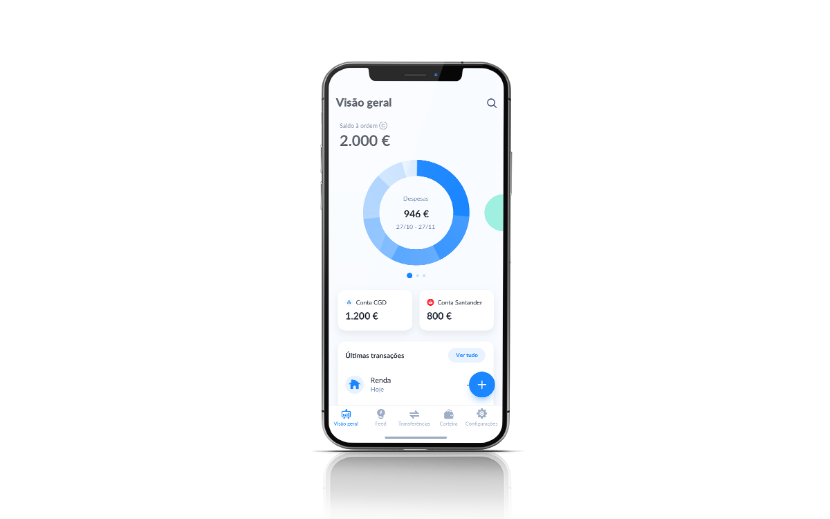No ecrã principal da aplicação, verá três “donuts” (os gráficos em esfera) a representar, de maneira simples, um resumo do mês em curso. O donut das Receitas representa o dinheiro que recebeu neste mês, ou seja, o salário. O donut das Despesas reúne tudo o que já gastou no mesmo período. Por fim, o donut rendimento disponível apresenta a diferença entre as Receitas e as Despesas daquele mês, permitindo saber quanto dinheiro ainda tem para gastar até receber o salário seguinte.